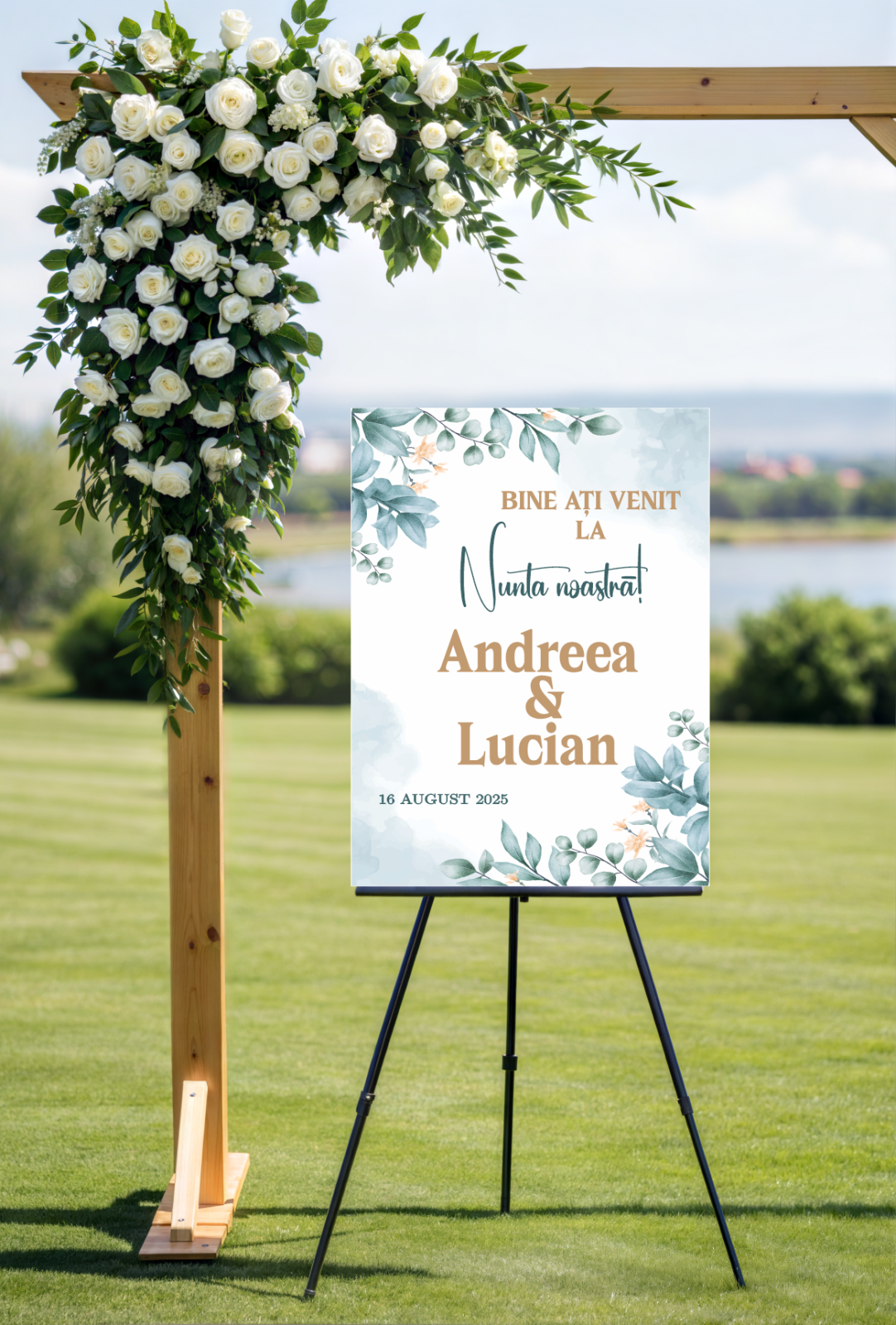 Panou de întâmpinare personalizat pentru nuntă – un detaliu elegant pentru cea mai specială zi!